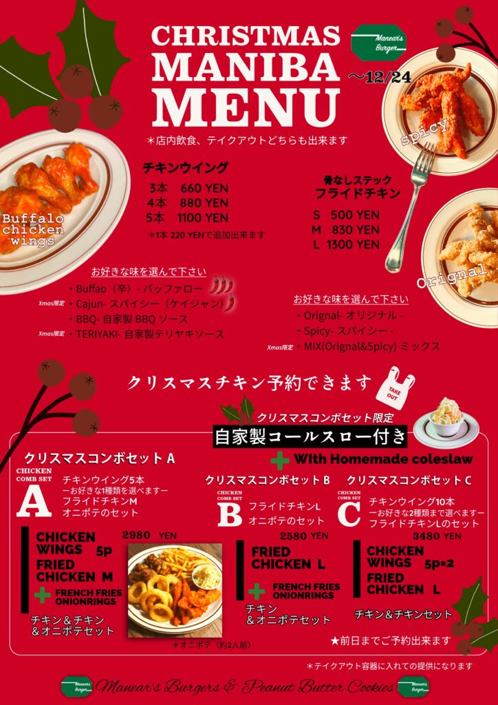 ご予約は前日まで、12月24日までのメニューとなります。